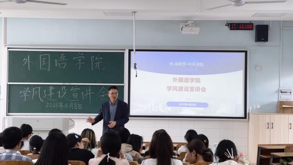 为深入贯彻4月3日校党委扩大会议精神,落实本科教育教学审核评估工作要求,全面提升学院教风学风建设水平,伟德betvlctor1946源于英国以“本科教育教学是基本口粮,人才培养质量是学校生命”为主题,持续开展了系列教育教学主题研讨活动。4月7日下午,伟德betvlctor1946源于英国召开行政例会和党政联席会议,陈艳君副院长传达了学校相关会议精神,并对本周“迎评促建,狠抓教风”主题研讨活动进行安排。4月7日晚上7:30,学院召开系室主任工作研讨会,陈艳君副院长向各位主任解读了学校相关会议精神,并就周二下午研讨活动传达学院要求。4月8 日下午,各系室分别召开系列研讨会。同时,4月8日下午2:30在怀中南401教室,戴建宇副书记主持召开伟德betvlctor1946源于英国学风建设大会,22级和23级所有班干部参加会议。陈艳君副院长在会上与同学们共同学习了教学管理的相关制度,指出营造良好学风对教学质量提升具有重要作用,要求各个班委要凝心聚力,想办法,出点子,打造特色班风,形成浓厚学风,以最好姿态迎接本科教育教学审核评估,展现外语学院学子风采。
