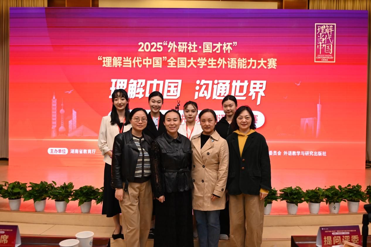 在近日结束的2025“理解当代中国”湖南省大学生外语能力大赛中,我校选派的选手和团队在与全省33所高校的本科生和研究生同台竞技中,共获得金奖3项、银奖5项、铜奖7项,并获团体银奖。