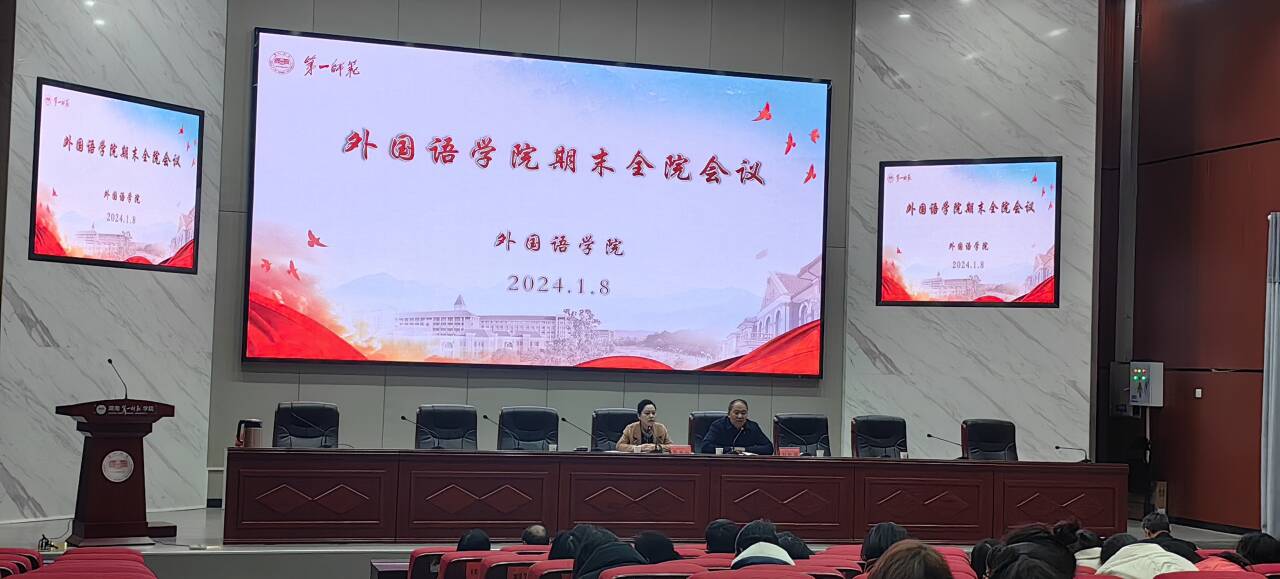 陈圣白院长在会议总结中提到:下学期要重点关注省级一流专业的验收工作,其中翻译专业面临的巨大压力与挑战,翻译系要提前谋划专业内涵建设。寒假即将到来,希望学院老师们利用寒假时间完成相应的科研和教学工作,特别是博士和教授要起到引领作用,带领学院各个层面的教学和科研团队,形成团队合力,奋力前行,争取相关核心成果的突破。