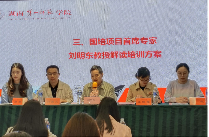 紧接着,首席专家刘明东对培训方案进行了详细解读。他详细介绍了培训的目标、内容、方法和评估方式,并强调了实践性和创新性在培训中的重要性。他表示,此次培训将注重理论与实践相结合,通过跟岗实践、教学观摩等多种形式,帮助学员们掌握先进的教育理念和教学方法,提升教育教学实践能力。