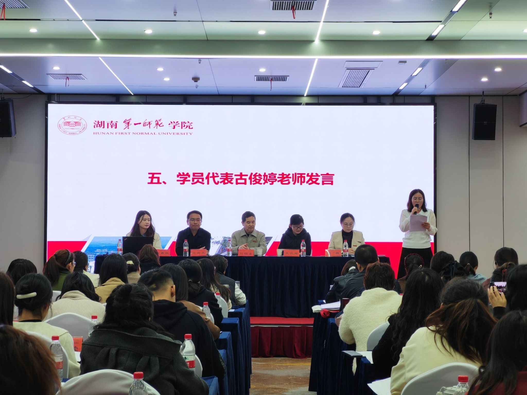 学员代表古俊婷老师以真挚的情感,分享了个人对教育事业的热爱与追求。她表示,此次国培班不仅是学习提升的宝贵机会,更是与同仁交流思想、碰撞智慧的绝佳平台。她期待与所有学员并肩作战,共同书写教育新篇章。