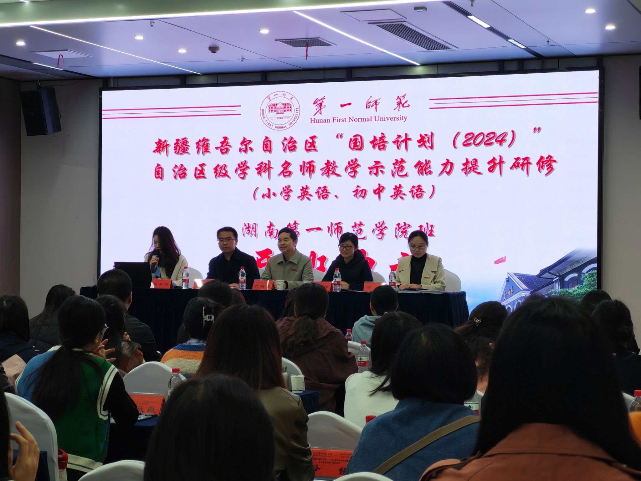 11月18日上午,由我院承办的新疆维吾尔自治区“国培计划(2024)”自治区级学科名师教学示范能力提升研修(小学英语、初中英语)开班典礼在长沙市梅溪湖豪生酒店隆重举行。此次培训旨在聚焦新疆基础教育发展,汇聚教学名师,共谋教育发展新蓝图。伟德betvlctor1946源于英国副院长王佳娣,首席专家刘明东,班主任刘洁文、梁薇、廖嘉琰出席了开班典礼。