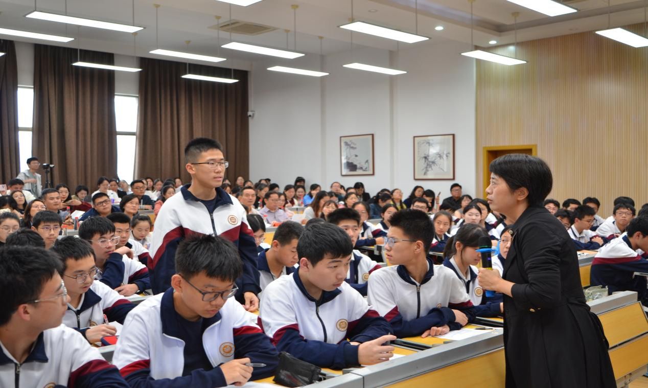 本次研讨中,陈喜贝副教授受邀走入高中课堂,执教了一节关于外刊阅读示范课。陈喜贝老师借用三个问题支架Question1: What do you see? Question2: What might have been seen? Question3: What details do you see? 引导现场师生共同阅读一段120词左右、选自《纽约时报》的外刊文本。通过层层递进的教学设计,喜贝老师引导现场师生超越了以往以词汇和语法讲解为主的教学局限,走向了深层的篇章理解和逻辑分析,短短四十五分钟实现了教师在语言教学中培养学生的英语思维,同时积极发挥外刊语篇助力人格塑造的教学目标。课堂上,来自不同学校近百名深耕一线的英语教师及明德中学高二的学生聚精会神,跟随喜贝老师的授课节奏在完成时文解读的同时也完成了一场深刻而美妙的思想之旅。