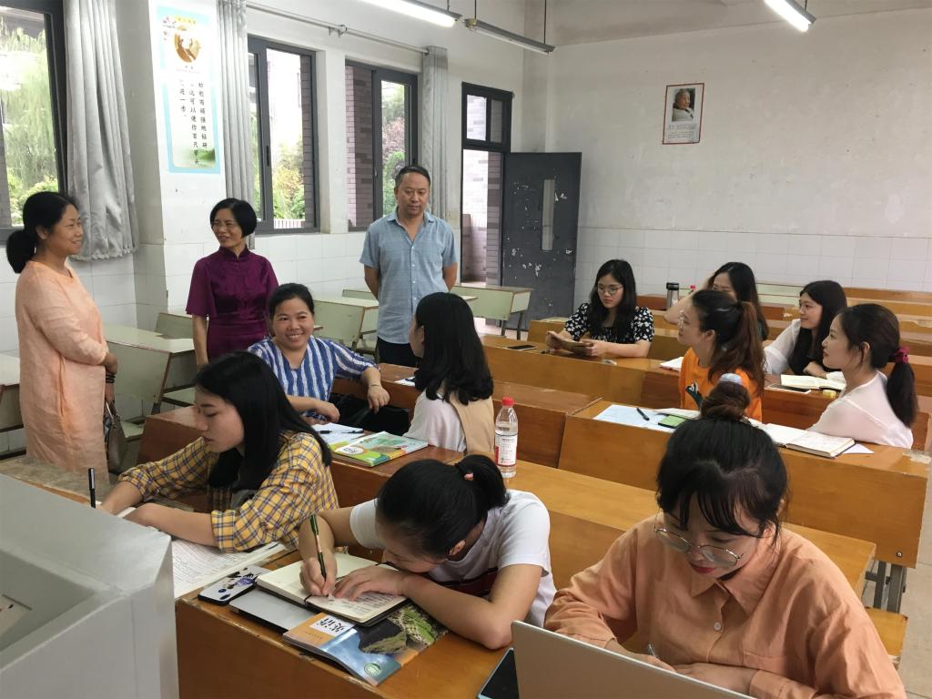 此次模拟赛分三步进行。首先,李晖旭老师利用丰富案例和参赛选手探讨教育问答技巧。李老师强调大家一定要熟背教育理念,关注教育热点话题;在教育问答时要注重交流感,善用排比句和学会辩证思维,能自圆其说。接着,参赛选手进行了教育问答和片段教学。选手们上课端庄大方,富有创意的语言,挥洒自如的仪态彰显出了大学生较扎实的教学基本功以及洋溢着朝气与热情的风采。李建亚、李晖旭和邓星分别给选手进行了点评。他们认为选手在教育问答的技巧性、板书设计的规范性、教学内容组织的紧凑性和逻辑性以及教学评价的有效性等还有较大的提升空间。最后,邓星老师还和选手探讨如何把戏剧有机融合到课堂教学中去,以便提升课堂教学效果。