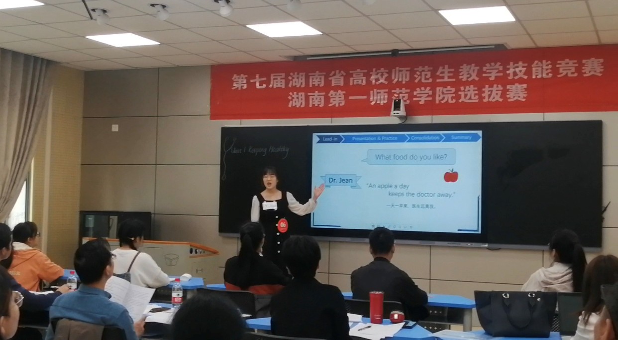 2021年5月23日,“第七届湖南省高校师范技能竞赛伟德国际victor1946选拔赛”在特立楼北栋501教室顺利举行。来自各个学院34名选手参加了比赛。我院康响英副院长、指导老师陈艳君博士亲临比赛现场全程观摩,为选手加油。