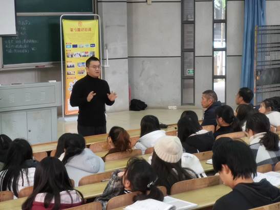 水伟老师从口译的基本定义、性质特点及工作环境等多个方面出发,结合自身为诺贝尔化学奖获得者Danielle Shechtman、世界著名激励大师Mr. John Coutis等口译的实际经验,分享了自身在口译过程中的心得体会、口译应具备的条件,并传授了口译工作中突发状况之应对方法。他指出口译是文化的桥梁,不是简单的语言输入与输出,需倾注真情实感,并针对学生的实际情况,为学生的英语学习与口译提出了宝贵的建议。特别强调,口译学习是厚积薄发,它需要一个积累、发现、改进、完善的过程,在学习过程中要戒骄戒躁,脚踏实地,将学习落到实处。