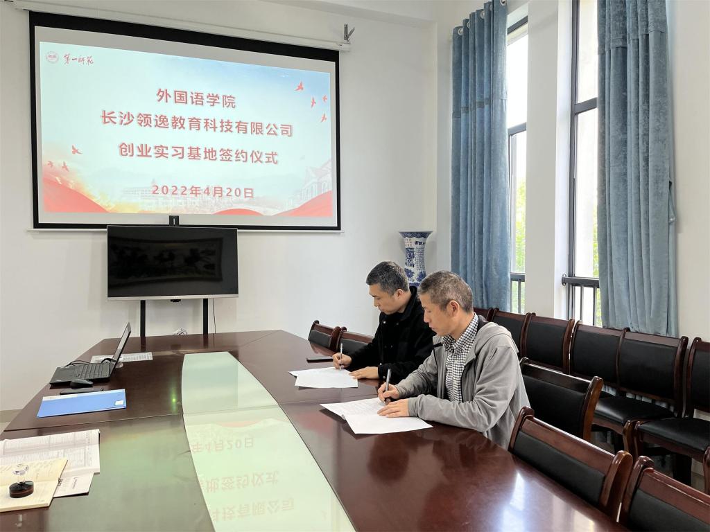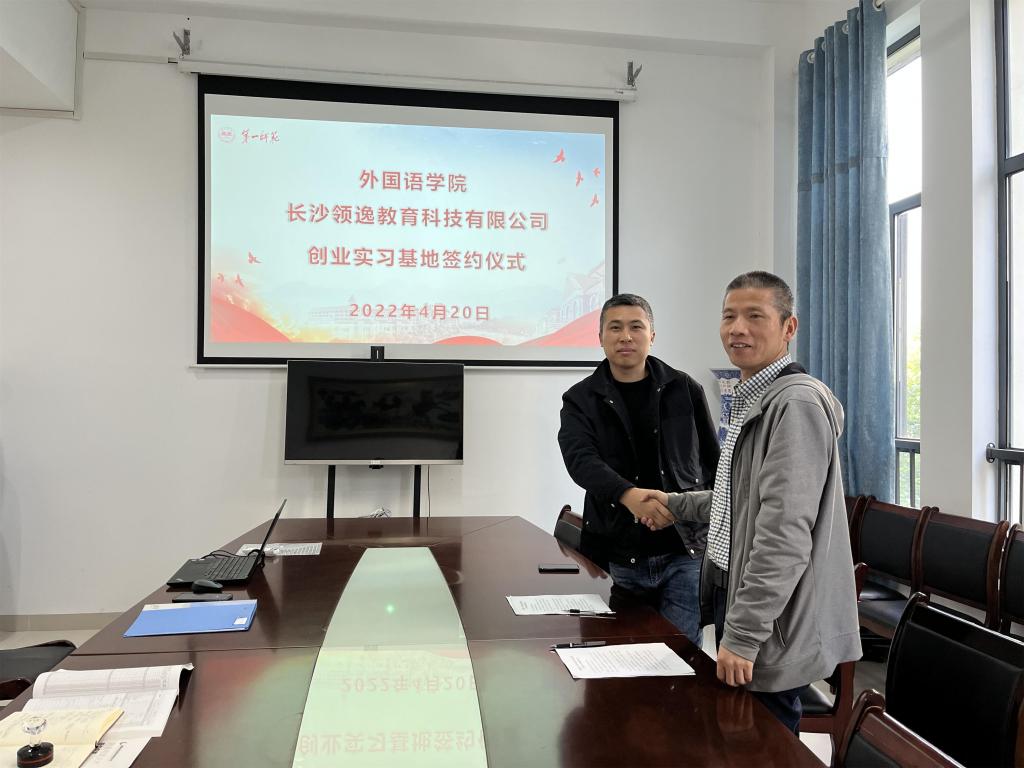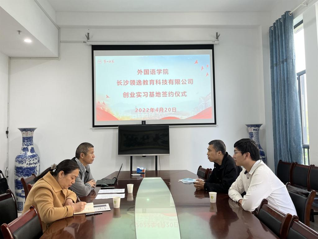 为进一步强化实践教学环节,提高英语非师范专业人才培养质量,深化产教融合,为企业输送高素质的人才,实现专业与产业、企业和岗位对接,4月20日上午,我院与长沙领逸教育科技有限公司“创业实习基地”签约仪式在百熙楼223举行。伟德betvlctor1946源于英国刘宇松副院长、长沙领逸教育科技有限公司王龙副总等人出席了仪式。