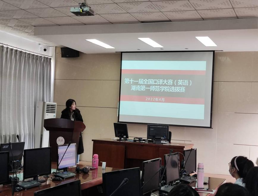 为提高学生综合素养,激发口译学习动力,选拔具备译员潜质的优秀学生,我院于4月19日在同声传译实验室举行了第十一届全国口译大赛(英语)院部选拔活动。翻译系罗亦陶担任选拔评委,共计20余名学生参与选拔。