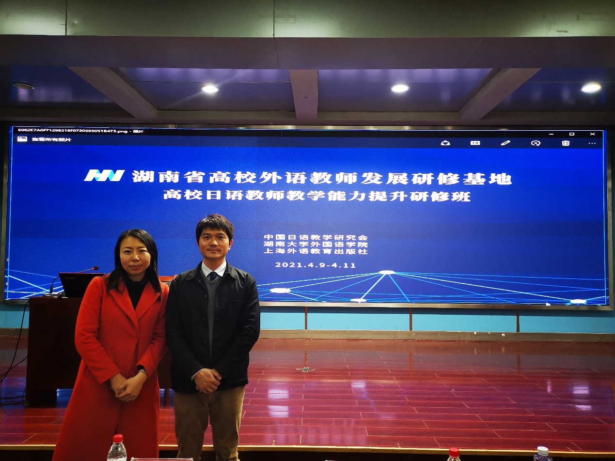 2021年4月10日-4月11日,伟德betvlctor1946源于英国教师吴娱、刘锐在学院领导大力支持下参加了在湖南大学举办的湖南省高校外语教师发展研修基地第八期研修班暨西南地区高校日语教师教学能力研修班。4月10日上午中国日语教学研究会会长北京外国语大学周异夫教授发表了“新文科背景下的日语专业课程改革与建设”的主旨报告,湖南大学伟德betvlctor1946源于英国副院长张佩霞教授做了“思政融入-《指南》指导下的日语专业核心课程教学设计”的报告,上海外国语大学日本文化经济学院院长高洁教授做了“线上线下混合式教学设计与实践”的主旨发言,四川外国语大学日语学院院长黄芳教授介绍了“双万计划”背景下日语一流专业建设——日语基础阶段课程《综合日语》教学创新经验。下午来自湖南不同高校的教师上了各类课型的日语示范课。4月11日上午教学工作坊,吴娱老师参与了日语精读工作坊的集体备课活动,她提出:论语的思想在日本企业界非常受欢迎,日本企业经营之神稻盛和夫深受论语的影响,创办了两个全球五百强企业。中国优秀传统文化让全世界受益。日本文化环节可以使用线上插花的方式增加学生对美的感受力和鉴赏力,培养学生热爱生活,进行隐形思政教育,被湖南日语专业委员会副会长胡俊副教授高度评价。上海伟德betvlctor1946源于英国高洁教授对小组说课进行了点评,并提出中肯可行的意见。刘锐老师参加了日语会话组工作坊,并作为小组代表进行了说课,他向全场与会老师宣传了伟德国际victor1946的基本情况,将示范课所学知识运用到课堂上,并用大学生应该警惕电话诈骗的实例在会话教学中融入了思政元素。会后,课程组就大学日语思政课程建设与中国日语教学研究会会长周异夫教授进行了交流。