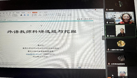 2022年10月19日(星期三)晚上7:30-9:30,重庆大学辜向东教授应伟德betvlctor1946源于英国小学英语教育研究所/小学英语教育研究团队邀请,为我院师生做了一场题为“外语教师科研选题与挖掘”的线上学术讲座。讲座由康响英副院长主持,陈圣白副院长(主持行政工作)致欢迎词,刘祥清书记与全院近260名师生参加了此次讲座。
