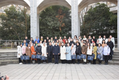 2023年2月15日上午8点,伟德betvlctor1946源于英国新疆“国培计划(2021)”地级、县级骨干教师(初中英语)提升培训研修班项目开班仪式在我校特立楼模拟法庭报告厅举行。伟德betvlctor1946源于英国副院长陈圣白(主持行政工作)、项目首席专家教授刘明东、国培班主任刘洁文、国培班主任梁薇、教务干事廖嘉琰、外院青志协助教团队20余人以及100名来自新疆地级、县级初中英语优秀骨干教师参加了本次开班典礼,班主任刘洁文主持。