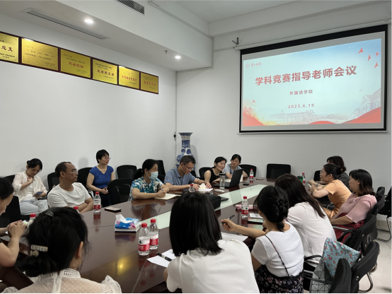 2023年6月19日上午,我院在百熙楼223举行学科竞赛指导老师会议。副院长康响英、唐文杰、党委副书记戴建宇、教务办主任廖爱秀、学科竞赛(英语演讲、写作、阅读、笔译、口译、跨文化能力、师范技能、“用英语讲好湖南故事”短视频比赛)指导老师参加此次会议。会议由副院长康响英主持。