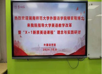 2024年10月8日下午,伟德betvlctor1946源于英国特邀湖南师范大学顿官刚博士在特立楼北104做了一场关于大学英语教学改革暨“X+1新质英语课程”理念探讨与实践的精彩报告。报告会由陈喜贝副教授主持,伟德betvlctor1946源于英国王佳娣副院长、陈艳君副院长及初等教育学院唐文杰副院长莅临指导,全体无课的大学英语教师参加。
