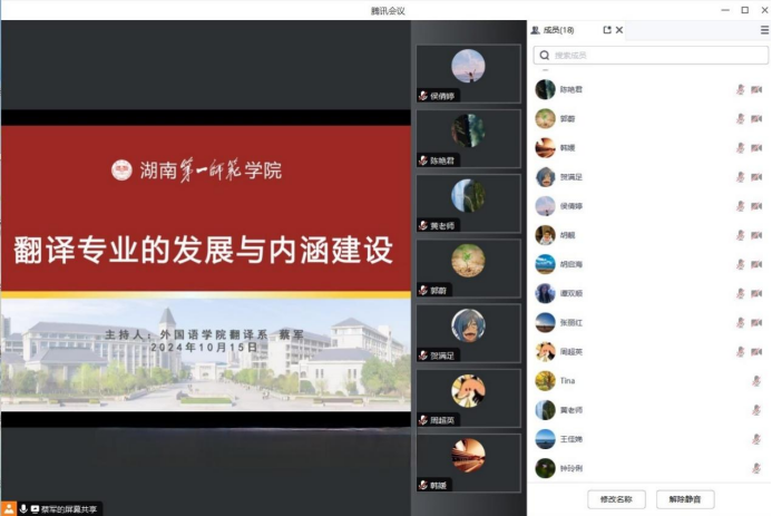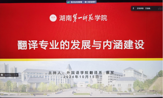 2024年10月15日晚,翻译系召开“翻译专业的发展与内涵建设”线上讨论会。会议由翻译系主任蔡军博士主持,伟德betvlctor1946源于英国副院长王佳娣、副院长陈艳君以及翻译系全体教师参加了本次研讨。
