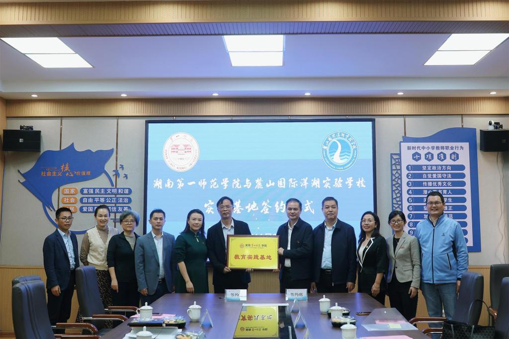 2024年11月8日,我院与麓山国际洋湖实验学校签订实践基地建设协议。学院党委书记何培森、副院长王佳娣、副院长陈艳君,长沙市麓山国际洋湖实验学校党总支书记周佳、校长肖伟、副校长施源、副校长肖彤、副校长王小武等校领导参加实践基地签约授牌仪式。