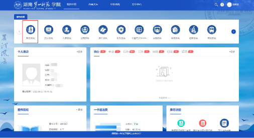•第一步,进入学校主页,点击上方“信息门户”或首页中“校内资源”的“教务管理系统”。