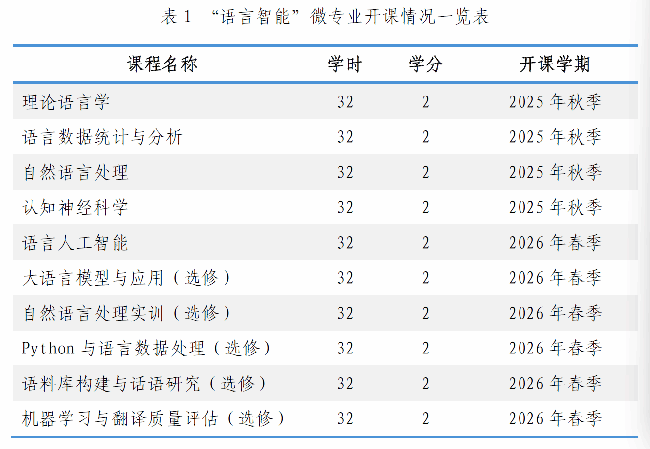 3.内容扎实,能力导向:采用小班化教学模式,注重基础知识的掌握、理解与运用,强化动手实操能力,你将亲手尝试实战项目。灵活时间授课,顺利完成所有课程和考核后(如表一所示,共计7门课程,14学分),将获得微专业认证证书。这将成为你简历上浓墨重彩的一笔,为你进入就业选择、斩获高薪提供强力背书。