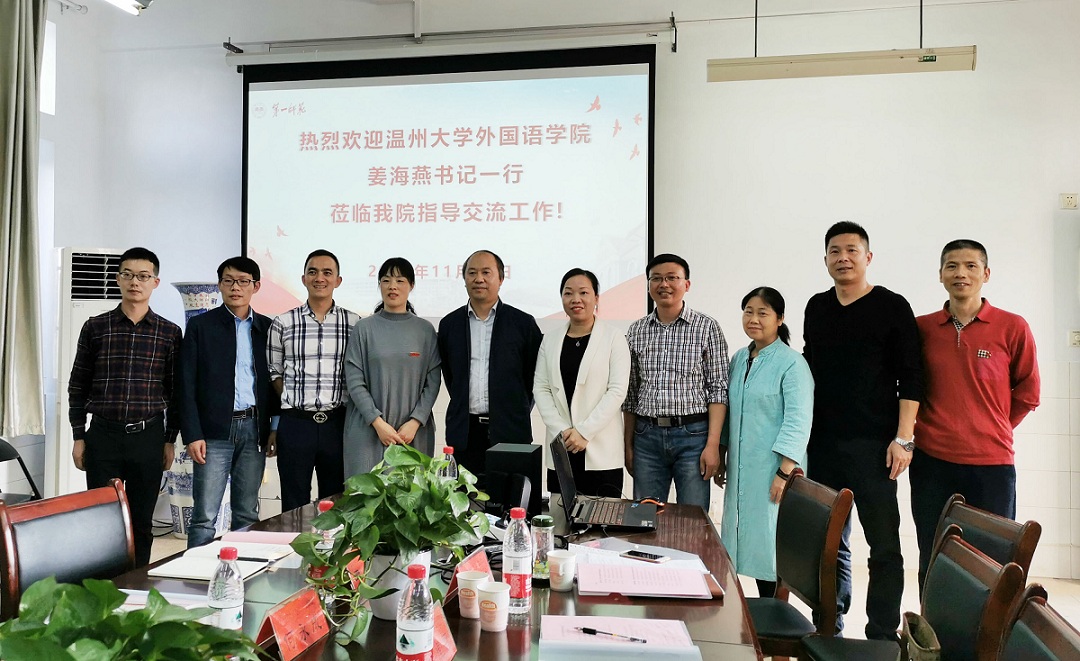 11月18日下午,温州大学伟德betvlctor1946源于英国书记姜海燕、副院长何永成、副书记陈勃、院长助理李开以及英语系主任杨开泛一行五人来我院调研,就学科和专业发展等展开交流。伟德betvlctor1946源于英国全体院领导、党政办主任、院长助理及教研室主任参加了交流会,会议由刘祥清院长主持。