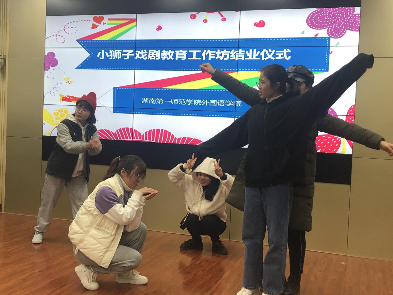 《小狮子教育戏剧工作坊》于2019年12月成立,以社团学习的方式在伟德betvlctor1946源于英国正式启动。工作坊由外院廖慧老师主持,邀请了岳麓区李肖蕾名师工作室的名师邓星和陈鑫老师担任工作坊的指导老师,开始教育戏剧的相关培训。