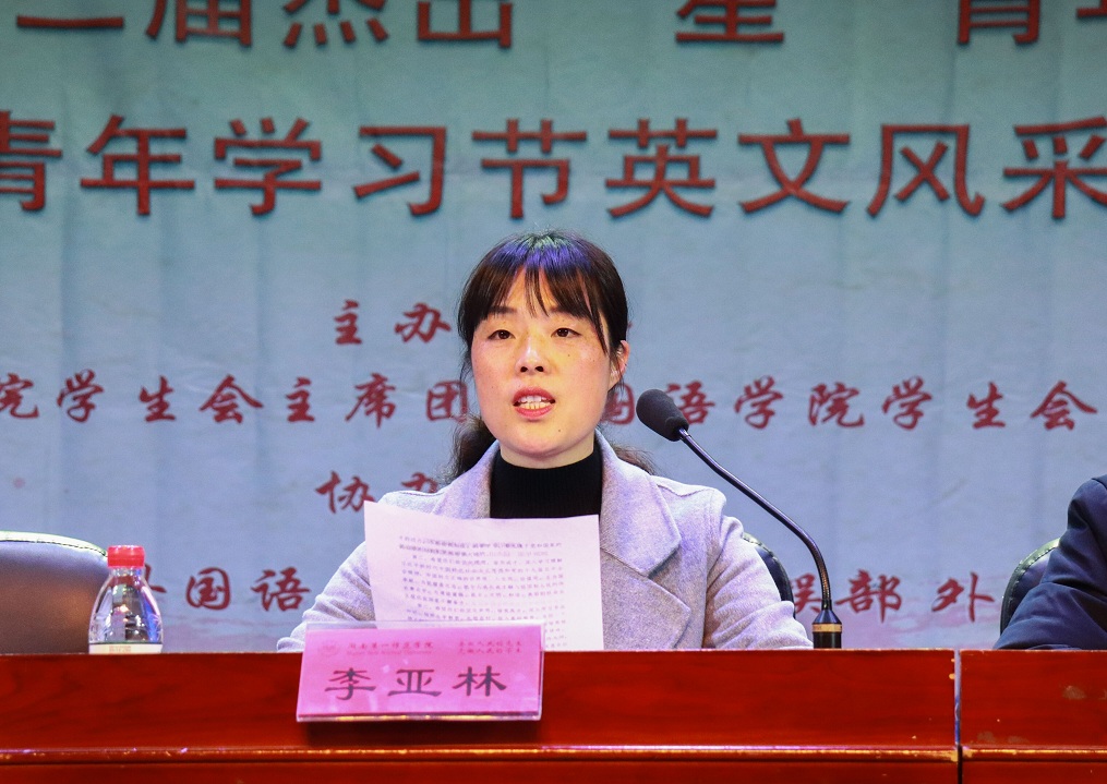 首先,在高昂的国歌声后,李亚林书记向获奖的“星”青年表示热烈的祝贺。她表示,“星”青年刻苦学习文化知识,积极参与社会时间锻炼、努力践行社会主义核心价值观、是我们学习的模范。作为未来的人民教师,他们有强烈的责任感、使命感和荣誉感,有坚定的理想信念和高尚的道德情操,是我们学习的榜样。另外,李亚林书记向外院学子寄语,希望外院学子能坚定信仰、立志成才;坚定理想,奋发成才;坚定梦想、培育英才,为中国特色社会主义奋斗,为人民群众奋斗。