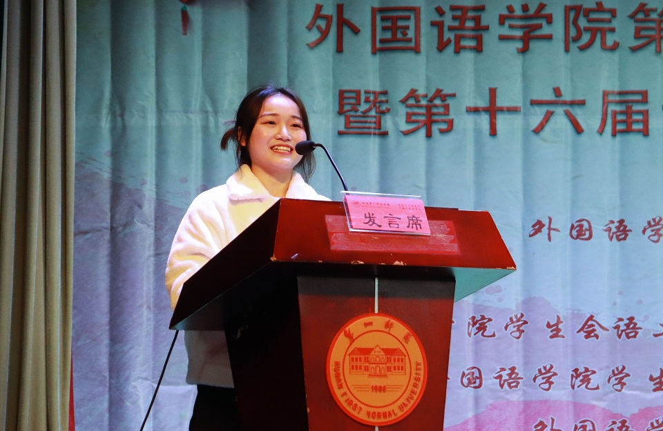 另外,18英语3班李歆作为“星”青年代表发言。首先,她向伟德betvlctor1946源于英国以及各位老师表达了感谢之情。她表示,伟德betvlctor1946源于英国和英语专业对她的就业或者是深造起了很大的帮助。另外,她从三个方面讲述了自己的大学学习,还向外院学子传授了学习方法,她强调课堂是学习知识的重要源泉,外院学子应该时刻牢记自己学生身份。