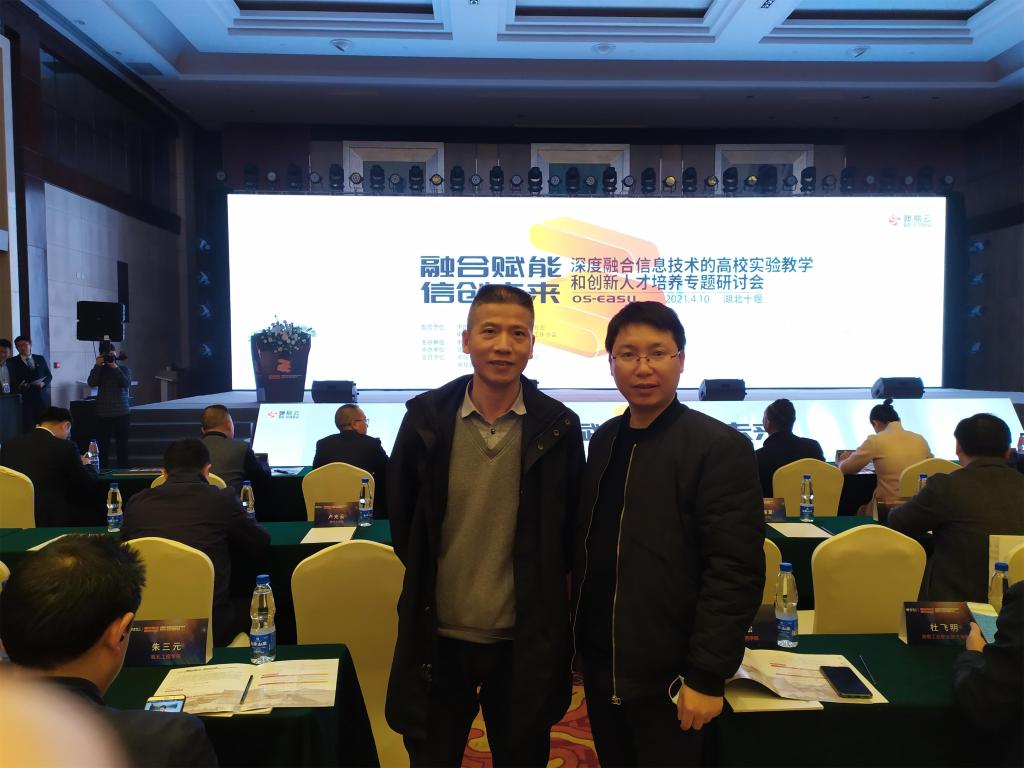 2021 年是“十四五”规划的开局之年,随着 5G、云计算、物联网、人工智能等新一代信息技术的广泛应用以及新基建的发力布局,教育信息化基础建设已成为新基建重点之一。实验教学作为高等学校教育体系的重要组成部分,对提高高等教育质量至关重要。为推进信息技术与实验教学的深度融合,加强实验教学改革与创新,构建产学合作人才培养共同体,推广信创最新成果和应用案例,由中国高等教育学会教育信息化分会、中国高等教育学会实验室管理工作分会指导,中教全媒体主办,武汉噢易云计算股份有限公司承办的以“融合赋能 信创未来”为主题的深度融合信息技术的高校实验教学和创新人才培养专题研讨会,于 2021 年 4 月 10 日在湖北十堰召开。伟德betvlctor1946源于英国刘宇松副院长、李新宇老师应邀出席了会议,并参加了教育部2020年第二批产学合作协同育人项目签约仪式,刘宇松副院长作为项目成员代表上台签约。