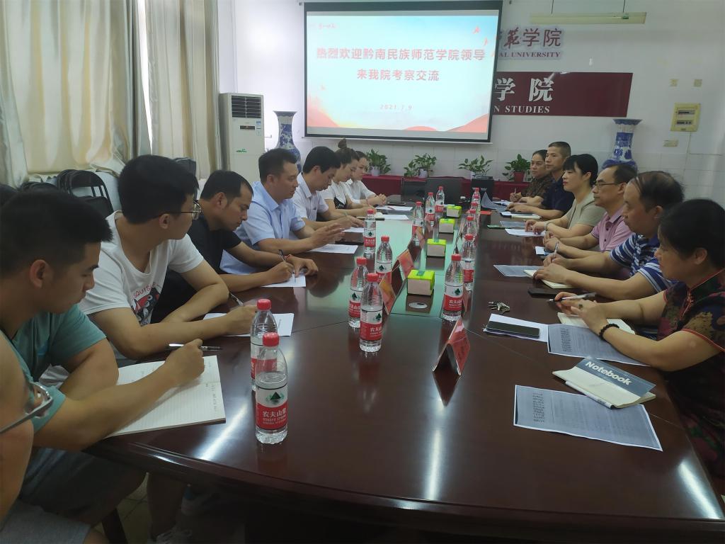 7月9下午,黔南民族师范学院教务处处长陈钧一行7人来院考察交流。交流会由李亚林书记主持,教务处副处长唐文杰、公共外语教学部主任刘明东、我院党政领导及教科办同志参加了交流会。