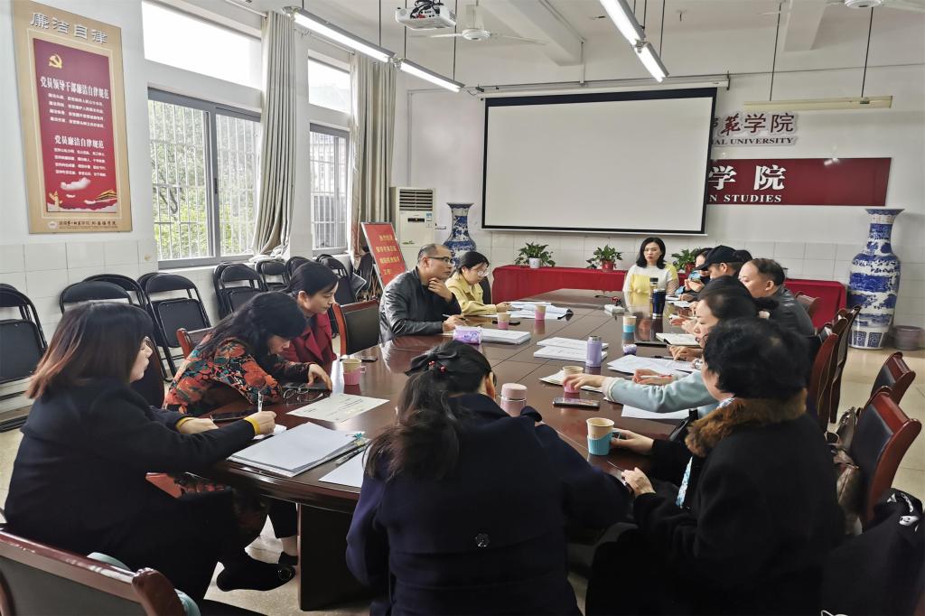 首先,刘祥清院长对欧阳处长莅临我院指导学科建设工作表示热烈欢迎。接着,康响英副院长对伟德betvlctor1946源于英国近三年在学科队伍、人才培养、科学研究、学术交流等方面的情况进行了汇报,介绍了我院外语学科建设所取得的成绩,以及存在的薄弱环节和下一步的工作安排。之后,刘祥清院长就我院专业硕士点申报情况、学科建设规划、科研平台建设和经费使用以及师资队伍建设等问题与欧阳处长进行了深入交流。欧阳处长在发言中肯定了伟德betvlctor1946源于英国近年来在学科建设与科研工作方面所取得的成绩,鼓励加大学科交叉和团队合作,争取在国家课题、省级科研平台和科研成果奖等方面取得进一步的突破。