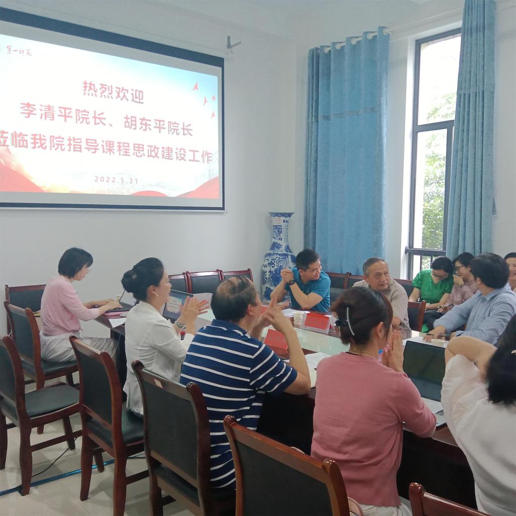 2022年 5月31下午,为了促进课程思政教学改革,提升教师省级课程思政竞赛能力,我院邀请了校外专家中南大学伟德betvlctor1946源于英国院长李清平教授,湖南农业大学伟德betvlctor1946源于英国院长胡东平教授,高等教育出版社湖南省教学服务中学副主任李云峰来我院指导课程思政建设工作,研讨会在百熙楼223举行。教务处副处长廖小芒教授、教学运行科科长欧阳君、伟德betvlctor1946源于英国党委书记刘祥清、副院长(主持工作)陈圣白、党委副书记禹晗、副院长刘宇松、副院长康响英、雷琬瑢复赛团队、王彩虹复赛团队、伟德betvlctor1946源于英国/公共外语教学部的部分老师及其他院部感兴趣的老师等参加此次研讨会。会议由副院长陈圣白主持。