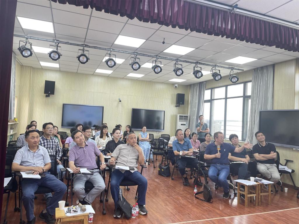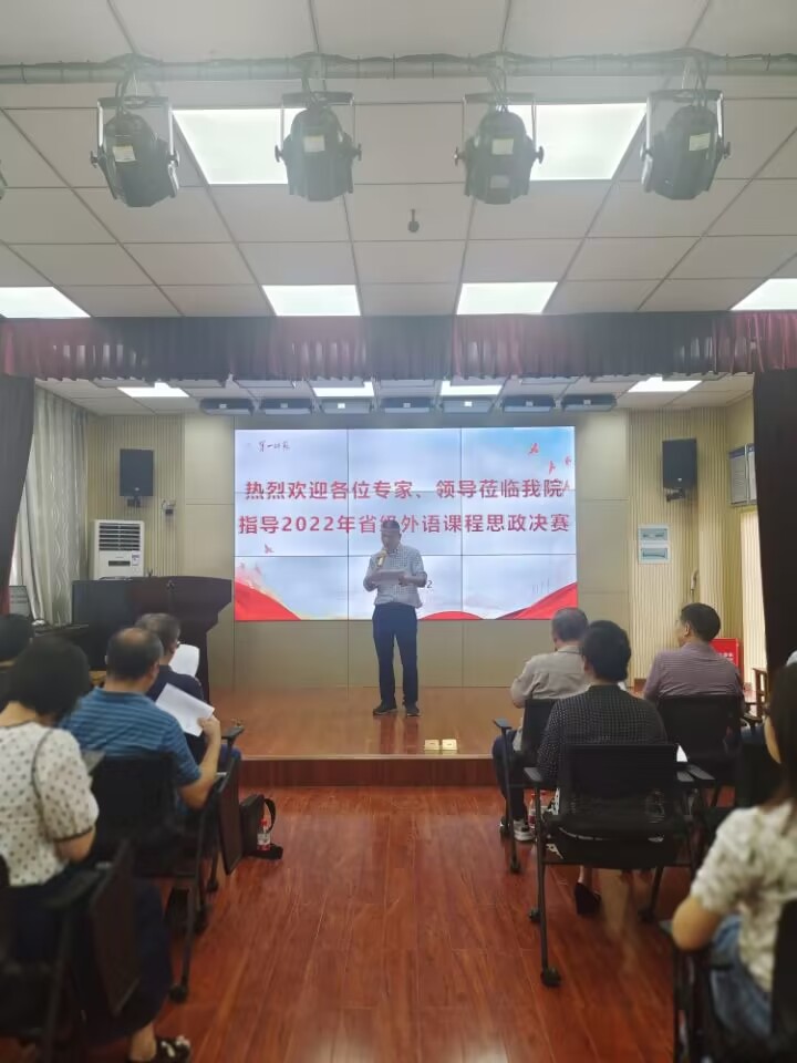 为更好地迎接9月中旬湖南省普通高校课程思政教学竞赛决赛,9月2日下午,我院在怀中北605举行湖南省高校外语课程思政教学竞赛学院模拟赛。 本次模拟赛邀请了5位校外专家及刘明东教授、陈喜贝老师、李双老师3位校内专家莅临指导。学院党委书记刘祥清、副院长陈圣白(主持行政工作)、副院长刘宇松、副院长康响英及王彩虹、雷琬瑢两个参赛团队参加了此次模拟赛。模拟赛由刘宇松副院长主持。