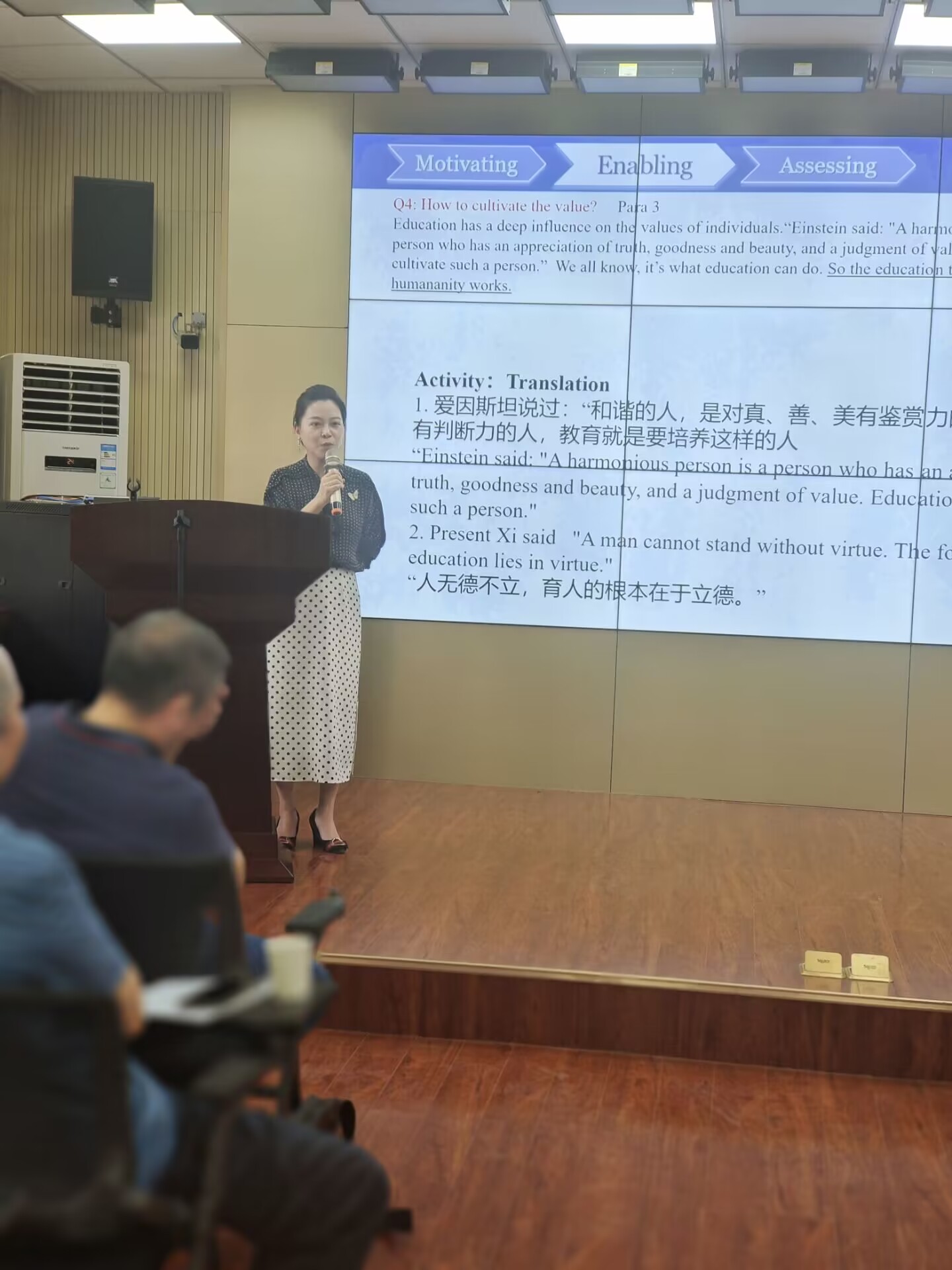 模拟赛上,我院两位参赛主讲教师雷琬瑢和王彩虹老师分别进行了10分钟说课和5分钟教学内容展示,并回答了专家的提问。专家们针对两位老师在此次模拟赛中表现,从不同方面和角度给予了详实、中肯、富有建设性的意见与建议。