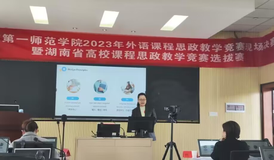 4月25日下午,伟德betvlctor1946源于英国2023年外语课程思政教学竞赛校级决赛现场说课于怀中楼602拉开帷幕。湖南大学伟德betvlctor1946源于英国副院长何岚,我院周敏、陈喜贝、李双、王彩虹等4位英语教师担任本次大赛评委。我院的10位选手各展才能 ,共同为观众们献上了一场激情饱满的教学盛宴。