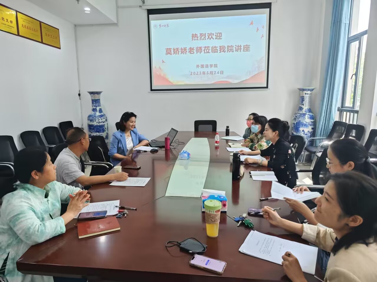 5月24日下午,省级外语课程思政教学比赛一等奖获得者、湖南工商大学伟德betvlctor1946源于英国莫娇娇老师应邀来我院作题为“课程思政大赛经验分享——‘三要,三不要’”的讲座。我院主持行政工作的副院长陈圣白,副院长唐文杰、康响英,以及2023年参赛的王晓团队和孙玉萍团队与会。会议由唐文杰主持。