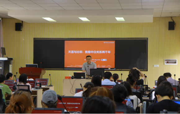 讲座中,陈小法教授从近年来中日两国民间的好感度测评数据、中日邦交正常化50周年以及习近平主席近期会见日本首相岸田文雄等话题引入,在丰富史料的佐证下,详细梳理了两千年来的中日关系演变,分析了中日关系友好与对立交织的复杂局面成因,并就“新时代我们该如何研究日本”等问题提出了深刻、独到的见解。