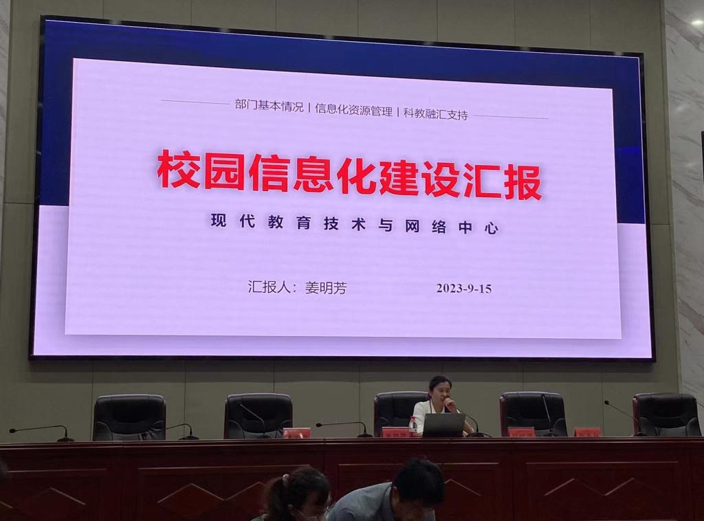 之后,现代教育技术与网络中心副处长(主持工作)姜明芳应陈院邀请,做了题为“校园信息化建设汇报”的讲座,从部门基本情况、信息化资源管理、科教融汇支持等方面介绍了校园网的建设成绩和使用方法,并对教职员工在校园网使用过程中存在的困惑进行了答疑。