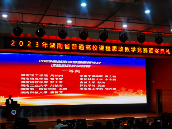 9月24日,湖南省普通高等学校课程思政教学竞赛在湖南警察学院落下帷幕。本次大赛由省教育厅主办,省高等教育学会教学管理专业委员会承办,湖南警察学院、高等教育出版社协办。比赛分为理工(医学)、文科和外语三个类别,文科类分人文社科组和经管法组两个组别参赛,理工(医学)类分理科医学组和工科组两个组别参赛,外语类分大学英语组和英语类专业组两个组别参赛。我院王晓团队荣获英语类专业组省级一等奖。