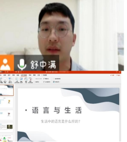 我院于9月29日下午15:30~17:00通过腾讯会议开展了“语言与生活”线上讲学。本次主讲人为舒中满老师,他为学生介绍了语言在生活中的体现。23翻译1班全体学生参加了此次线上讲课。