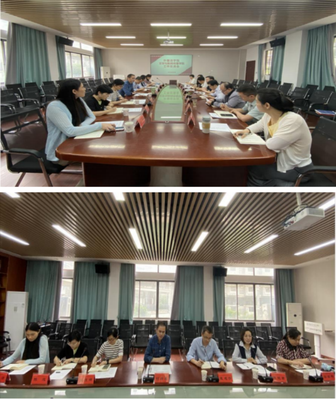 为推进学院专业学科建设,贯彻落实教育教学改革“意见 30 条 ”,进一步提高学院管理水平,2024年6月4日,学院党委书记何培森 带领外院新一届班子成员和三办主任到文学和新闻传播学院学习交流。文学与新闻传播学院党委书记刘立勇、院长龙永干及全体院领导和三办主任参加交流会。会议由龙永干主持。