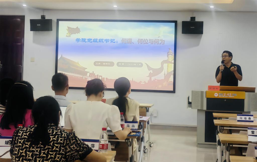 本次培训学院党委委员、系(室)正副主任、支部书记、支部委员、三办(含实训室)人员、专职辅导员共36人参加,培训内容涵盖“党支部建设和业务知识”“日常办公基本技能”“教学、学科、专业建设内涵与发展”等方面内容,培训主要以专题讲座和分组研讨形式进行。