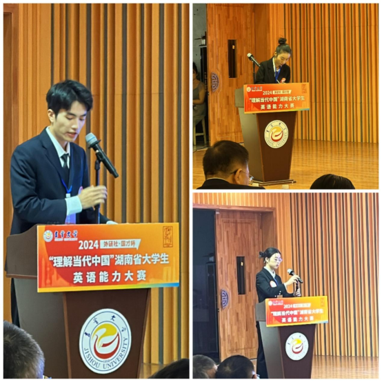 在11月3日结束的2024“理解当代中国”湖南省大学生外语能力大赛中,我校选派的14位选手和3个团队,在与全省33所高校的本科生和研究生同台竞技中,共斩获金奖4项、银奖7项、铜奖4项,并获团体银奖。