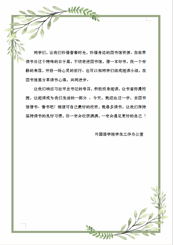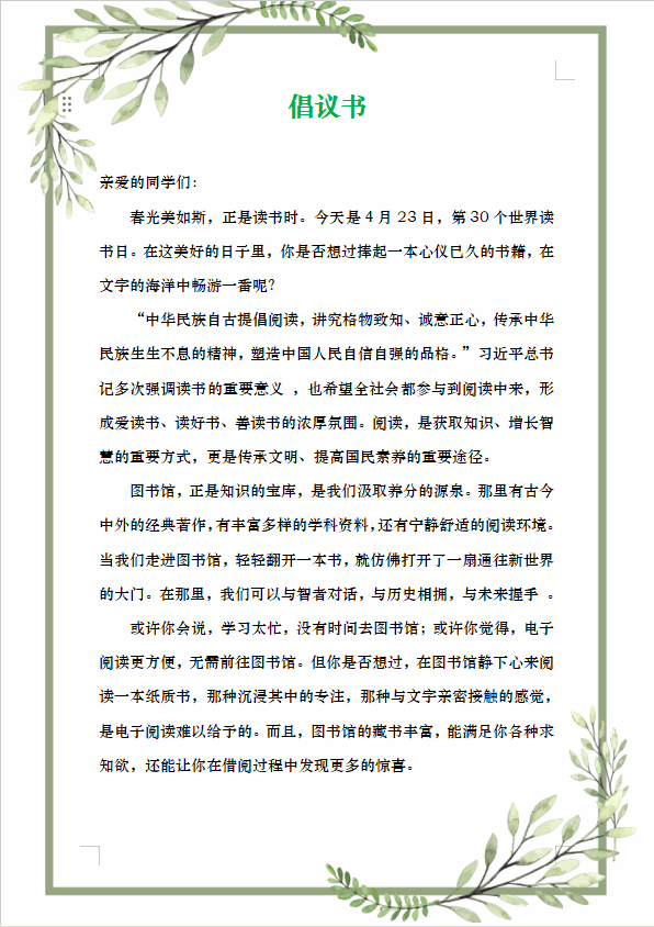 世界读书日读书倡议书