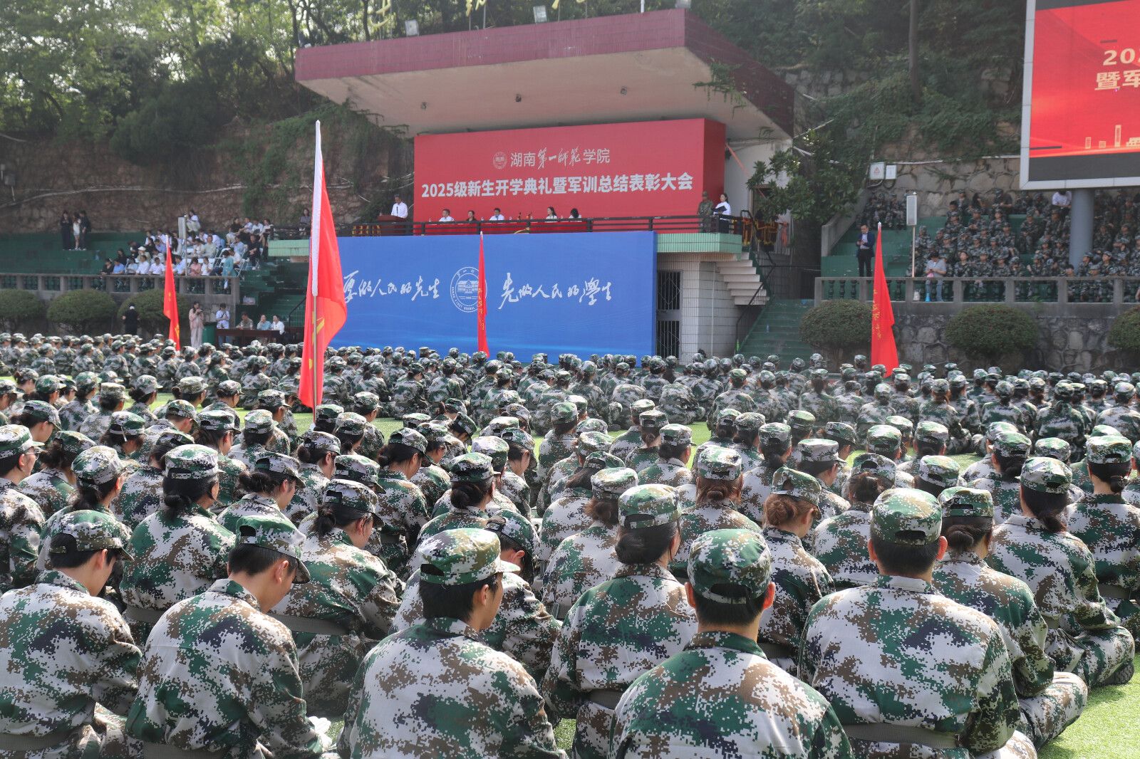 此次军训总结表彰大会在热烈的掌声中圆满落幕。站在“千年学府、百年师范”的历史新起点,2025级外院学子将秉承“实事求是,不自以为是”的校风,扎根红色沃土,书写属于他们的青春华章。
