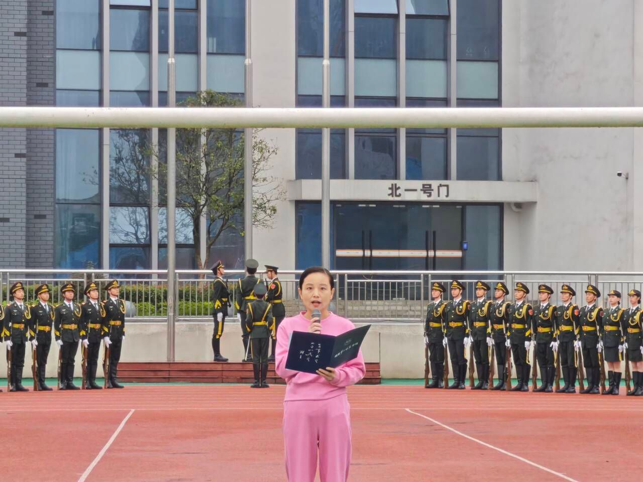 随着升旗仪式正式开始,国旗护卫队迈着铿锵有力的步伐,昂首挺胸走向升旗台,在激昂的国歌声中,五星红旗冉冉升起。全体师生肃立,向国旗行注目礼。