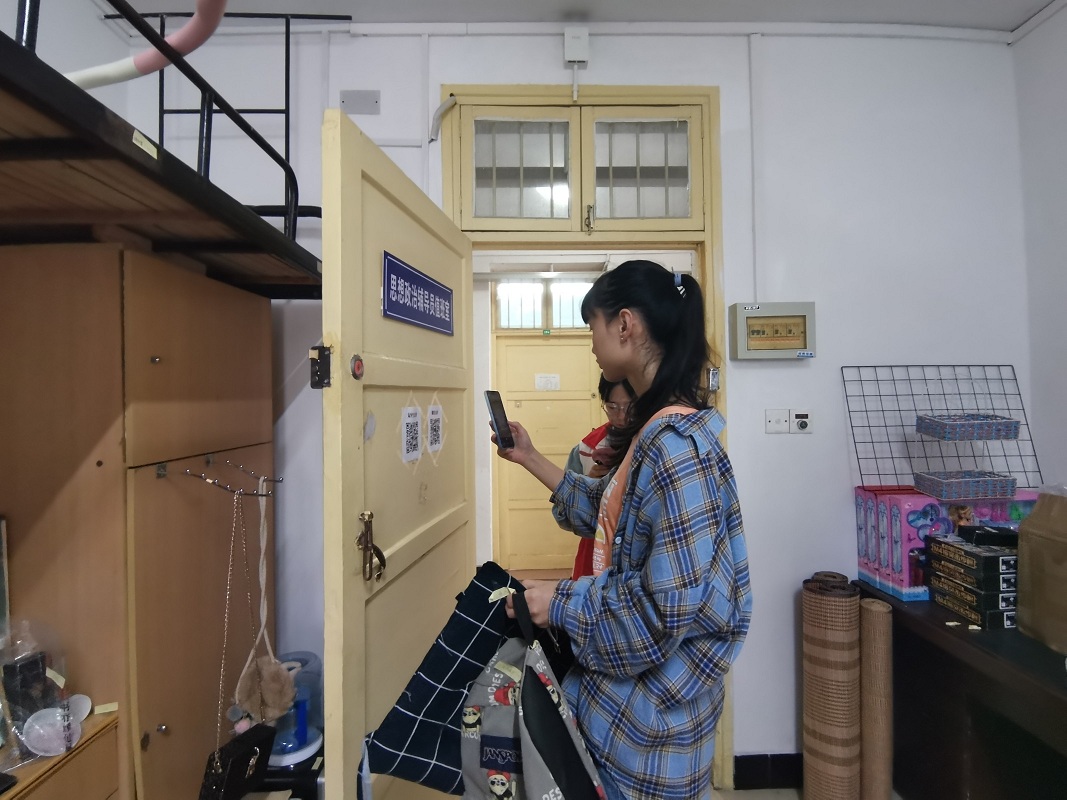 “教材教辅和教具,风扇洗衣烘干机。生活用品和书籍,统统甩卖不留情。”志愿者们在6栋宿舍卖力吆喝,陈列的商品琳琅满目,吸引了大量新生前来购买。