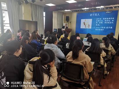 讲座一开始就深深地吸引着听众:经典的价值和魅力在流光岁影里永不褪色,先贤圣哲的智慧光芒照耀着人们的生活。中华经典孕育于自然,成长于生活或实践。刘教授着眼于家国,宣讲着历史中积累的智慧,展现着与现代生活息息相关的魅力。然后很自然地引入了主题,讲到老子的生平,关于老子本人的释疑,老子写作《老子》的过程,老子的思想主张,《老子》精彩内容的解读,《老子》思想的巨大影响及其在中国和世界的传播,特别提到了玄学、三玄、玄学的特点及其意义和影响,讲到了哲学家、竹林七贤、阳春白雪、下里巴人、太极图、八卦、中庸之道、阴阳平衡等等。