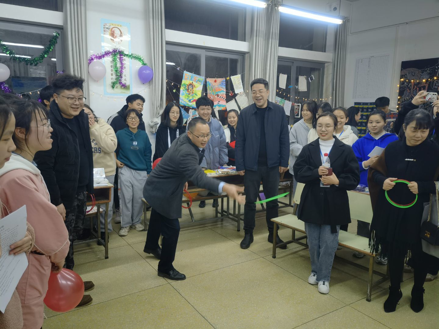 12月3日晚,我院于怀中楼北栋成功举行“忆百年峥嵘,展青春韶华”第十届教育节游园会成果展。校学工处处长张福国、副处长欧阳伶俐、校团委副书记易利、校党委秘书科科长陈阳、院党委副书记禹晗、副院长刘宇松、全体辅导员及千余名外院学子参与了此次游园会。