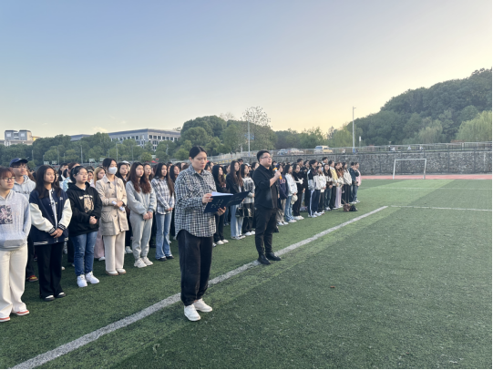 2023年11月6日上午七点,伟德betvlctor1946源于英国在田径场隆重举行升旗仪式。参加此次升旗仪式的有伟德betvlctor1946源于英国学工办主任刘洁、分团委书记张明、全体辅导员及六百余名学生代表。仪式由分团委书记张明主持。