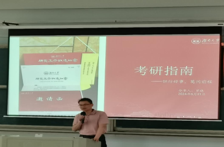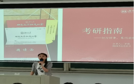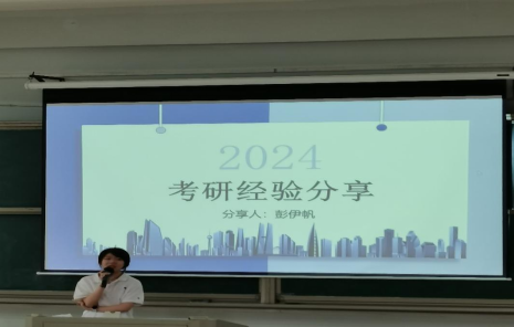 为给我院考研的学子们提供更多指导,增进同学们对研究生入学考试的认识,5月21日下午,我院邀请2021届毕业生罗娆和2024届毕业生彭伊帆在怀中南208教室作考研专题讲座。本次讲座由学院党委副书记戴建宇主持。