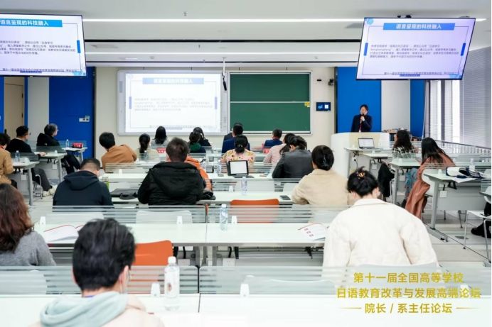 第十一届全国高等学校日语教育改革与发展高端论坛(院长/系主任论坛)论坛以“数智引领 聚力创新”为主题,旨在与全国日语学科同仁共商数智时代下日语专业及大学日语教学实践的改革方向,助力高等日语教育在专业优化浪潮中实现创新发展。300余位高等日语教育学界的专家学者、高校领导、学科负责人、骨干教师齐聚一堂,探索新时期下日语学科的高质量发展路径。