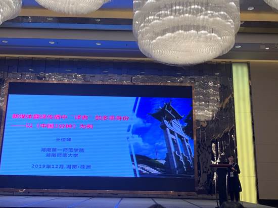 本次年会的主题是“新时代使命,跨学科视野”,下设三大分议题:翻译理论与实践研究、语言学与外语教学研究以及文学与文化研究。蒋洪新会长做了大会主旨发言,强调新的时代背景赋予翻译新的使命,翻译研究与教学要服务于国家战略,推动中国文化走出去。各与会学者纷纷就翻译与其他学科的交叉融合发表观点,提出翻译学与传播学、话语分析以及军事战略结合的构想,扩大了翻译研究的范畴,拓宽了研究者的视野。我院王佳娣老师在大会上做了《新媒体翻译传播中的译者身份——以<中国3分钟>为例》的主旨报告,受到与会专家学者的关注与好评。刘扬教授和张丽红副教授分别做了小组报告,分享自己的研究成果。
